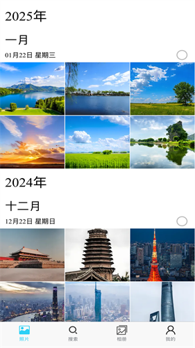 以时间轴的方式呈现照片,帮助你能由近到远的翻看自己的照片,回忆自己的曾经。