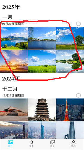 3、点击搜索即可在应用中快速查询要看的照片,便于找到节约时间。