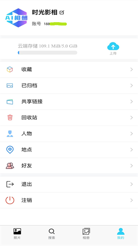 5、在个人中心就能上传照片到云端储存,还能共享链接给亲友一起看。