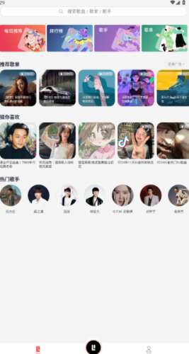 1、大家在进入app首页之后,能够看到推荐板块和猜你喜欢板块的热门歌曲。