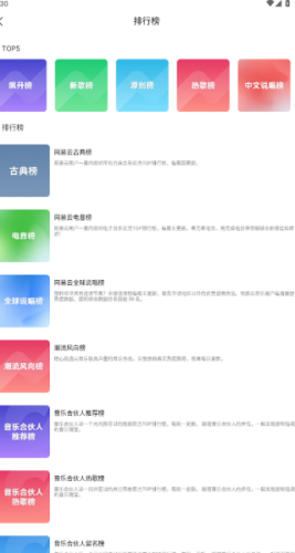 6、贴心的对平台上的所有歌曲进行规划分类,用户想看哪种类型的歌曲,直接点击相关界面就可以收听到同一类型的超多歌曲。