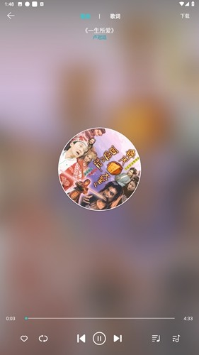 3、然后我们进入播放页面,里面提供下载、播放模式、歌单列表等功能。