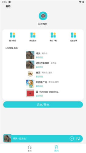 4、之后我们点击我的,里面提供我的收藏、歌单、下载、播放记录等功能。