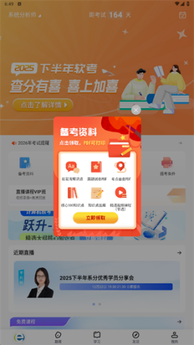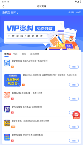 2、这里以系统分析师为例,选择后进入首页就可以收到免费的备考资料,点击立即领取。