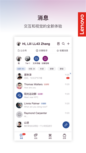 通讯录:可查看联想全球企业架构,让内部沟通更顺畅
