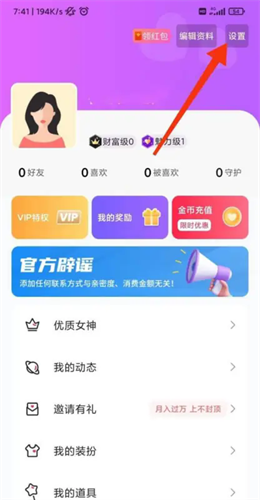 2、我的界面点击【设置】在个人中心页面中,查找“设置”选项(通常位于页面右上角或通过菜单展开),点击进入设置界面。