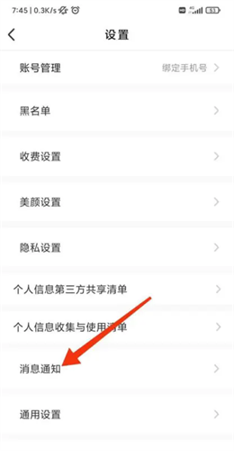 3、设置页选择【消息通知】在设置界面中,浏览选项列表,找到“消息通知”相关设置项(可能归类于“通知管理”或独立成项),点击进入消息通知配置页面。