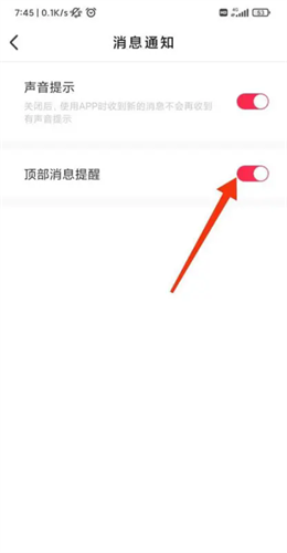 4、打开【顶部消息提醒】在消息通知页面中,找到“顶部消息提醒”选项(可能以开关形式呈现,如灰色表示关闭、蓝色表示开启),点击开关将其调整为开启状态即可。