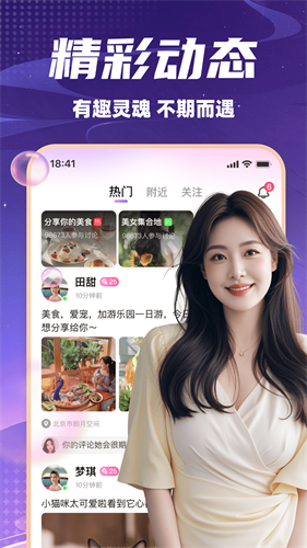 6、能精准推荐附近的人或符合用户兴趣的人,提高交友效率,帮助快速找到志同道合的朋友。