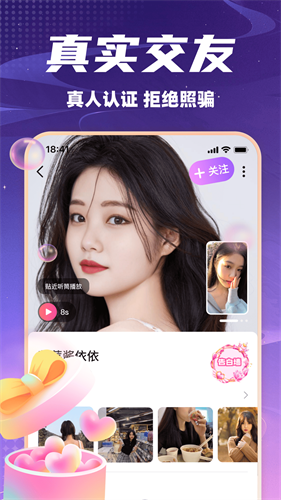 1、真实交友,真人认证,拒绝照骗,这里都是真实交友互动,可靠安全。
