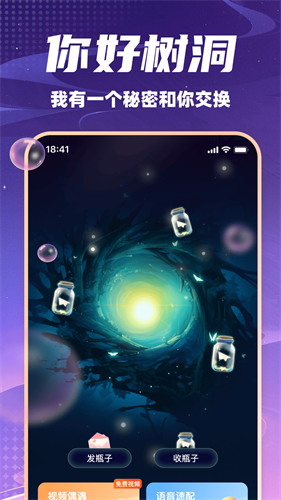 3、有神秘树洞,支持用户与陌生人匿名互诉衷肠、分享秘密,满足人们的倾诉需求。