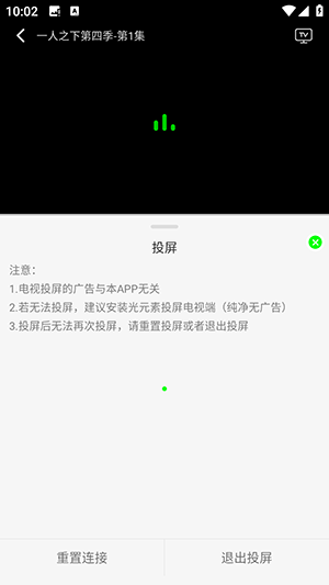 3、播放成功后,点击右上角的TV图标可以搜索投屏设备进行投屏。