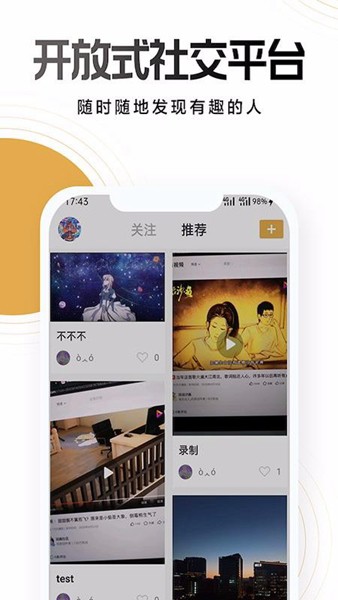 2、是一个开放式的社交平台,随时随地发现有趣的人,并进行交友。