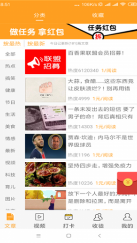 2、进入软件首页后,在文章页面可以查看多种分类的任务详情。