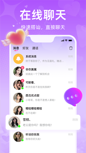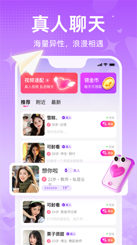 还可与你的心动网友进行语音通话聊天,语音聊天可以找到让你心动的声音。
