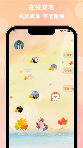 枫叶漂流瓶最新版是一款轻社交的交友App,应用没有花里胡哨的滑卡套路,也不搞算法绑架,用极简设计和温暖互动重新定义邂逅,整体界面以秋日枫叶为视觉主调,暖橙色调配上柔和动效,打开就让人心里一软,应用的操作更是简单到极致,动动手指就可以完成各种操作,同时应用还支持文字聊天、互赠小礼物、编辑个人资料,还能完成实名认证增加可信度,整个流程流畅又安心。枫叶漂流瓶最新版这款应用虽然功能不复杂,但每处细节都透着克制与用心,比如礼物设计走手绘风,不炫富只传情,提现规则透明,避免套路陷阱,反馈通道响应快,真把用户当回事。主要面向国内年轻群体,尤其适合那些厌倦了快餐式社交、又渴望真诚对话的人。在这个人人刷短视频却越来越孤独的时代,这款应用像一封慢递的情书,不求秒回,只愿有人读懂你字里行间的光。如果你也相信缘分可以始于一片虚拟枫叶,不妨下载试试看吧。