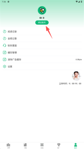 2、打开软件后进入我的页面,然后点击上方的绑定账号去登录。