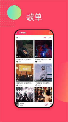 数万粉丝聚集,歌友每日分享歌单,听歌、交友这是属于你的私人音乐圈。