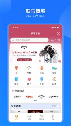 1、去商城中购买高尔夫球配件,可以到商城的配件中心挑选自己需要的配件。