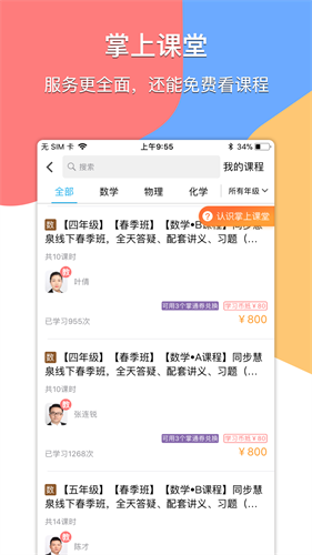 6、名师讲堂:包含大量优秀教师的微视频课件,随时观看,进行二次学习。