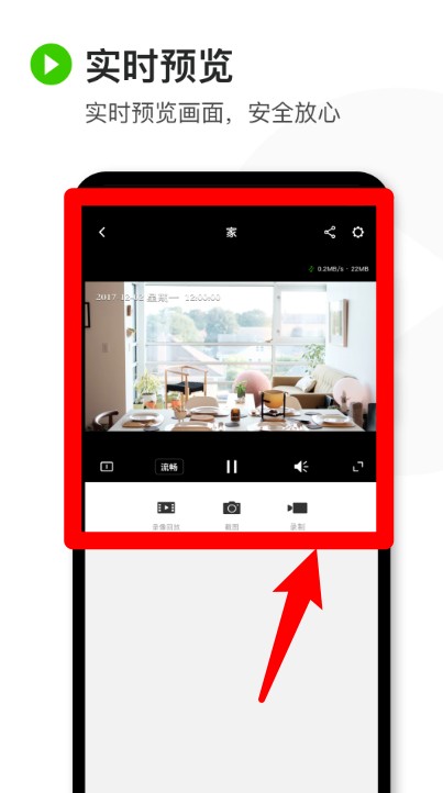 1、使用迅捷安防app可以实时的查看摄像头的监控画面,并支持录像回放。