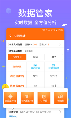 6、查看销售额,知道每个商铺的营业数据,让营业体验更舒适,便于管理。