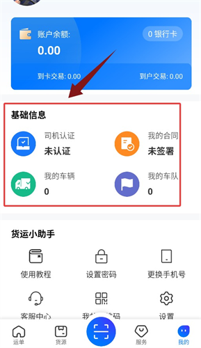 4、个人中心支持查看基础信息、司机认证、合同、车辆及车队管理。