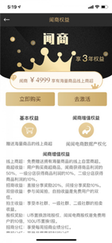 2、一键激活权益,当自己购买了基础权益或增值权益之后则可以在此直接激活。