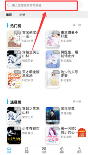2、进入书城中,可以直接搜索你喜欢的书籍名称或者书籍关键词。