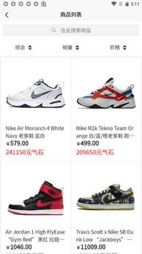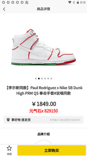 3、在具体的潮物商品列表中浏览,选中目标商品后进入购买流程。
