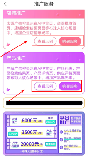 4、在推广服务详情页可选择购买,若不熟悉业务可点击“查看示例”了解详情。