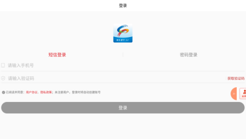 2、来到登录页面,大家可以选择短信登录的方式,输入手机号获取验证码就可以。