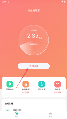 1、在本站下载并安装好软件,进入软件首页,然后直接点击立即清理。