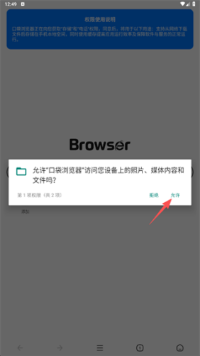 1、软件下载安装完成后,打开软件查看软件需要用到的手机权限,点击允许。