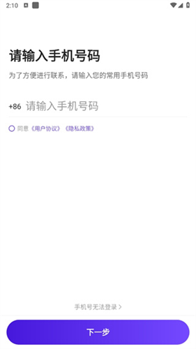 1、首先打开软件,之后输入上手机号点击【下一步】;
