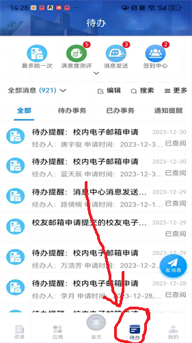 2、查看待办消息,了解全部待办任务,并能在线发布消息
