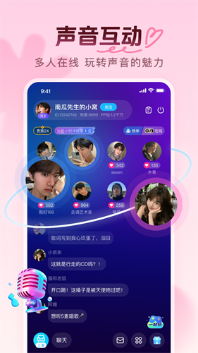用户可以通过语音连麦的方式和软件其他人在线交友,拥有更广的朋友圈。