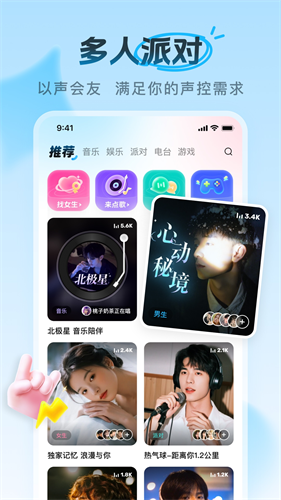 多人语音聊天交友,相亲约会,处CP找玩伴。不看外表只听声音,用最纯粹的方式,寻找最合拍的那个ta。