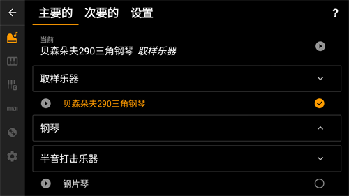 2、然后右上角设置按键可更改钢琴的乐器和音色。