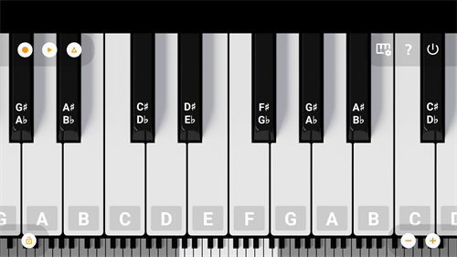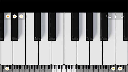 1、运行轻音钢琴app后,点击右下角的加减号可缩放钢琴的界面, 以适应不同的手机屏幕大小;