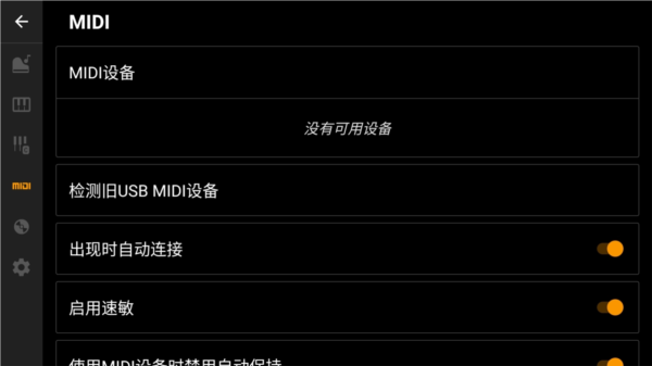 5、如果你有MIDI设备,那么你可以通过连接线来连接到手机上,然后在设置页面中的MIDI设置页设置MIDI设备。