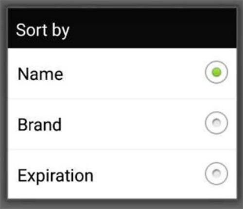 可根据名字、品牌、过期时间三个选项自由排序,满足不同管理需求。