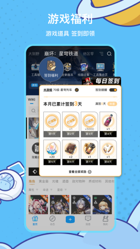 6、用户每日登录社区即可完成签到,领取游戏内道具、社区积分等持续性的登录福利。