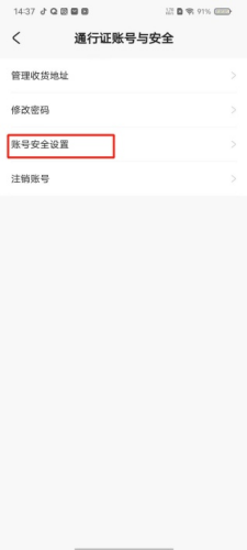 2、点击【账号安全设置】。