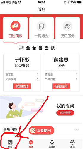3、可通过点击人物相关的问政入口,进入留言展示区域,再选择提问功能选项,即可即时提交问题。