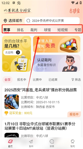 2、提供线上报名功能,用户可以轻松参与各类赛事活动。