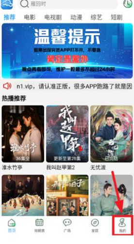 1、下载安装并打开云云视频app,进入首页后点击我的,进入播放页面开始观看。