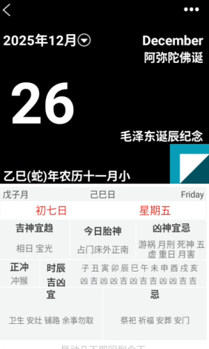 3、举例一个万年历,每天实时显示今天运势,介绍今天是什么日子,所有信息都在里面。