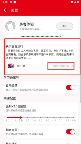 3、然后我们再进入到设置界面下,不仅完成后台运行设置,而且更是能够修改刷课倍速。