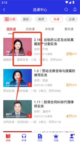 软件每周有一门新课程上传,请律师在点睛网首页的培训信息栏目查看最新课程。